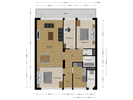 • Breed balkon op het westen over (nagenoeg) de volledige breedte;