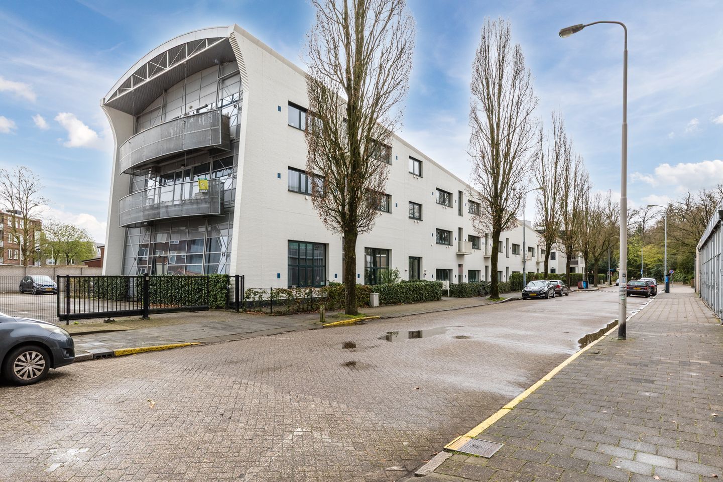 Via het bellentableau met brievenbussen bereik je de centrale entree met lift en trap. Aan de achterzijde is een tweede entree aanwezig. Op het afgesloten binnenterrein met elektrische poort beschik je over een eigen parkeerplaats. In het souterrain heb je een eigen berging.