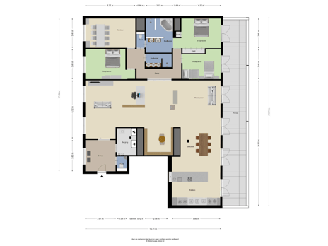 Het penthouse vlonderterras van ruim 63m², is gesitueerd op het zuidoosten waardoor u de gehele dag kunt profiteren van zonlicht. Het terras is uitgerust met meerdere verlichtingsvoorzieningen en biedt voldoende ruimte voor diverse zithoeken.