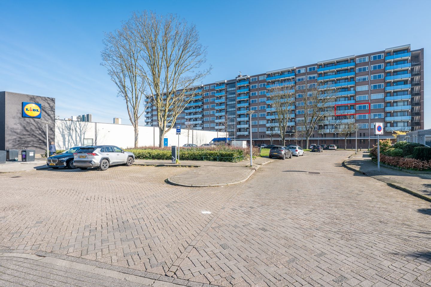 Naast de entree is de meterkast gesitueerd met een vernieuwde groepenkast. Bij binnenkomst van het appartement betreedt u de vestibule welke is voorzien van tapijt, waarna u doorloopt naar de hal. Vanuit de hal waar een laminaatvloer is aangebracht, welke is doorgelegd in de rest van het appartement, heeft u toegang tot de woonkamer, keuken, drie slaapkamers, de badkamer en de separate toiletruimte. De royale woonkamer (ca. 29m2) is voorzien van een laminaatvloer, schuurwerk wanden, een strak afgewerkt plafond en grote ramen met dubbele beglazing. Vanuit de woonkamer heeft u direct toegang tot het balkon op het westen, waar u kunt genieten van de middag- en avondzon. Tevens biedt de woonkamer toegang tot een kamer aan de voorzijde van het appartement welke thans in gebruik is als eetkamer maar welke eveneens als slaap/werk- of speelkamer kan worden gebruikt of indien gewenst eenvoudig bij de woonkamer kan worden getrokken zodat een riante living ontstaat. De separate keuken is gelegen aan de voorzijde van het appartement en volledig uitgerust met een moderne wandopstelling, inclusief een fraai stenen werkblad, diverse opbergkasten, een spoelbak met mengkraan, een Smeg 5-pits gasfornuis met 2 ovens, een RVS-afzuigkap en een vaatwasser. Tevens bevindt zich in de keuken de aansluiting t.b.v. de was/droog combinatie en de opstelling van de warmwater boiler. Drie slaapkamers Slaapkamer 1: Ruim en gelegen aan de balkonzijde, voorzien van een laminaatvloer, een strakke wand- plafond afwerking een airconditioner en een deur naar het balkon. Slaapkamer 2: Gelegen aan de galerijkant en voorzien van twee praktische inbouwkasten. Slaapkamer 3: Momenteel in gebruik als eetkamer, maar eenvoudig bij de woonkamer te betrekken voor een nog ruimere leefruimte. Moderne badkamer – De vernieuwde badkamer is volledig betegeld en beschikt over een inloopdouche met thermostaatkraan, een wastafelmeubel met mengkraan, diverse opberglades, een spiegel met verlichting, een bergkast en mechanische ventilatie. Separate toiletruimte – Modern uitgevoerd met een wandcloset en een fonteintje. Op de begane grond bevindt zich tevens nog een ruime berging (7m2).