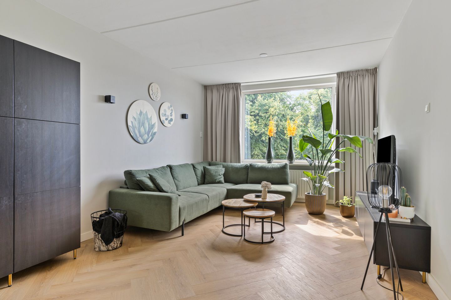 De royale doorzonwoonkamer is bijzonder licht dankzij de grote raampartijen aan zowel de voor- als achterzijde. Vanuit de woonkamer én vanuit de keuken zijn de twee balkons bereikbaar, beide afgewerkt met een houten vlonder.