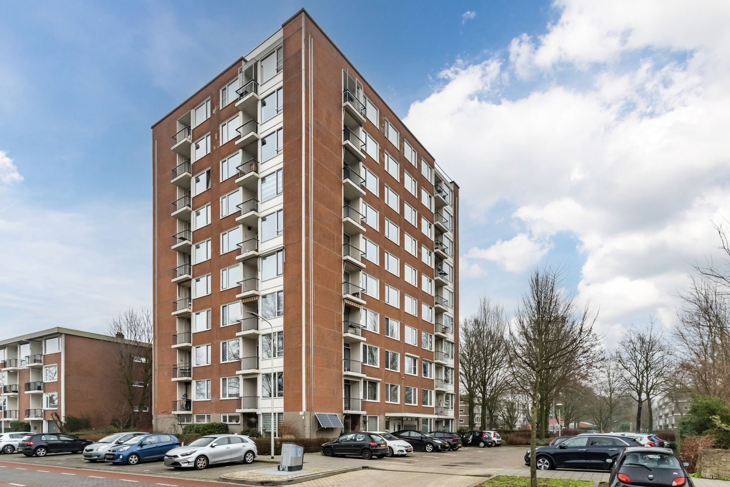 The first balcony, facing west, is accessible from the living room. The view over green spaces and low-rise housing is delightful. No buildings or trees obstruct the afternoon and evening sun, making this a perfect spot for sun lovers. The second balcony, facing north, is accessible from the kitchen and offers a beautiful view of the greenery along Veldmaarschalk Montgomerylaan.