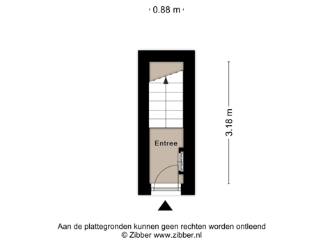 Entrance hall with meter cupboard and staircase. A path leads to the private storage room at the rear.