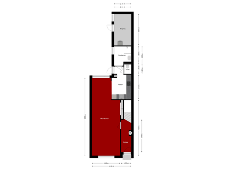 - 23 m² (8,11 meter diep en 2,79 meter breed)