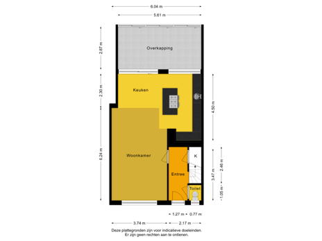 - 34 m² (5,69 meter diep en 6,04 meter breed)