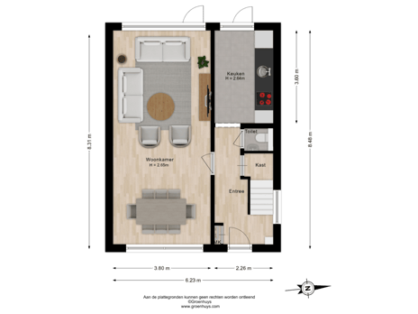 - 65 m² (9,50 meter diep en 6,80 meter breed)