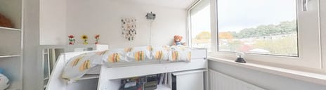Alle slaapkamers beschikken over voldoende lichtinval door de grote raampartijen. De kamer aan de rechterachterzijde is voorzien van een ruime kast en een airconditioning.