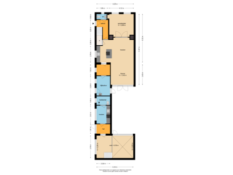 Tot slot bevindt zich achterin de tuin de volledig zelfstandige extra woon- of praktijkruimte, toegankelijk via de tuin of de zijingang. Hier vindt u een woonkamer, keuken, badkamer met inloopdouche en toilet én een loft met open ruimte.