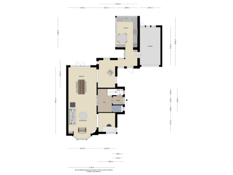 - Aanpandige garage/bijkeuken, voorzien van een elektrische deur, vloerverwarming en aansluiting wasapparatuur;