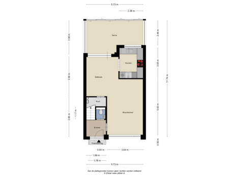 - 66 m² (11,00 meter diep en 6,00 meter breed)