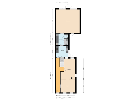 - 98 m² (15,00 meter diep en 6,50 meter breed)