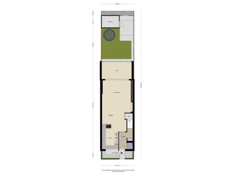 - 40 m² (7,45 meter diep en 5,43 meter breed)