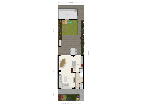 - 69 m² (11,00 meter diep en 6,30 meter breed)