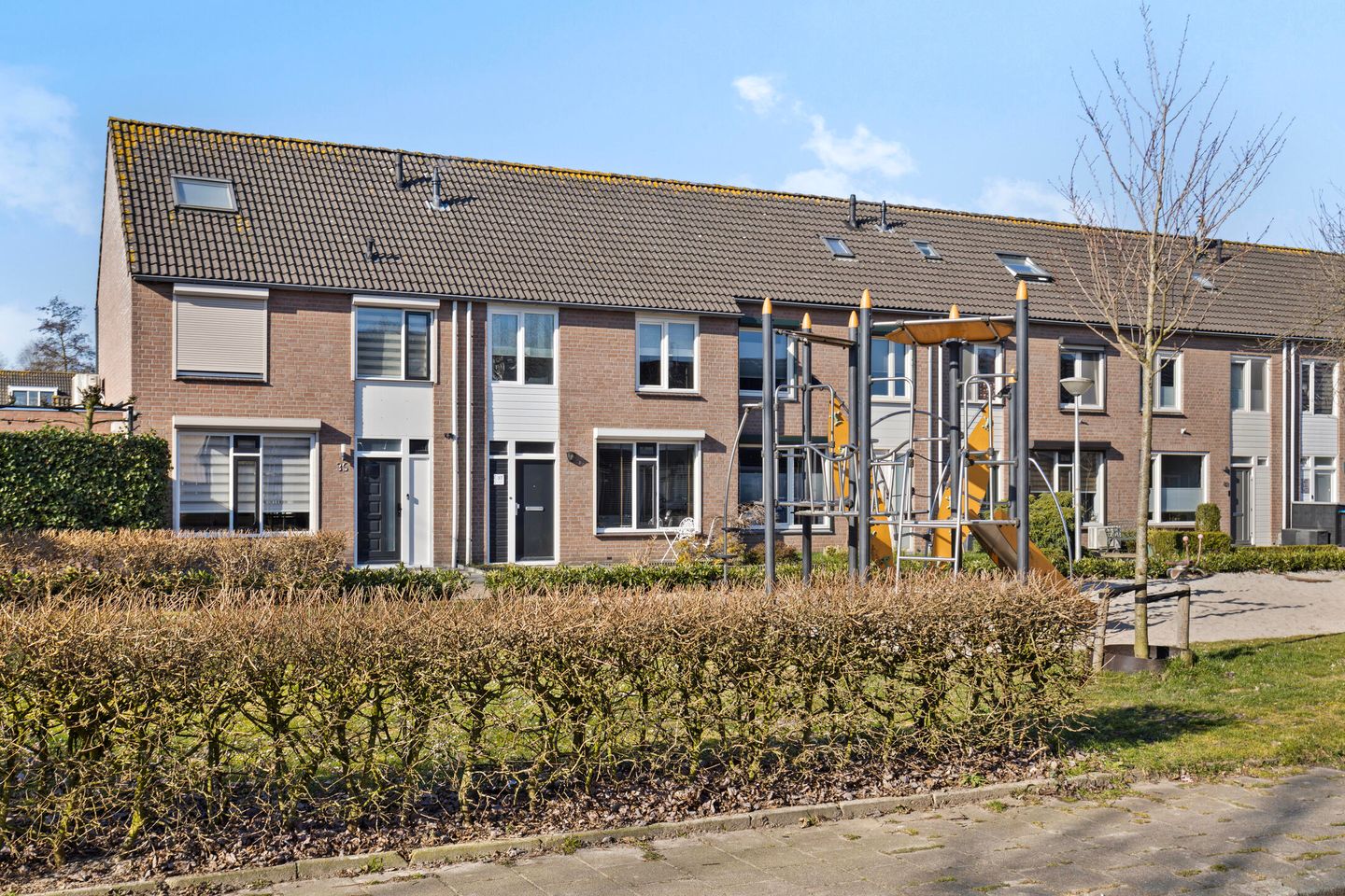 De voortuin is netjes aangelegd en grenst tegen de groenvoorziening met enkele speeltoestellen. In de onderhoudsvrije achtertuin is een overdekt terras aangebracht met diverse inbouwspots, kunstgras, extra buitenterras en een ruime garage/berging met elektra, water en een zolder. De garage is via de achterzijde bereikbaar via een pleintje.
