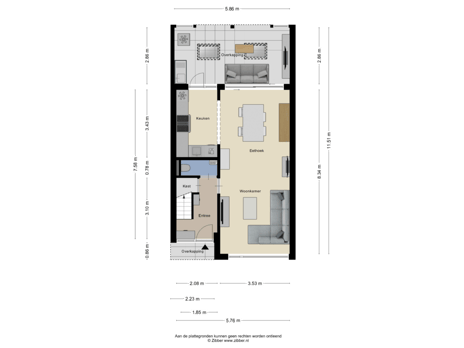 - 36 m² (7,54 meter diep en 5,98 meter breed)