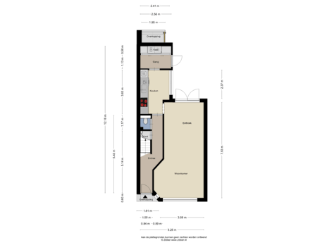 - 75 m² (15,00 meter diep en 5,00 meter breed)