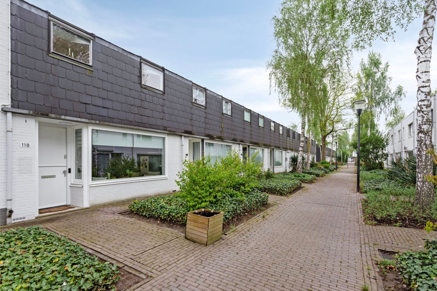 De achtertuin, gelegen op het zuidwesten, is onderhoudsvriendelijk aangelegd met sierbestrating en een plantenborder. Achterin de tuin staat de grote berging van circa 13,5 m² met elektra. Via een poort bereik je het afgesloten en gemeenschappelijke binnenterrein met een eigen parkeerplaats.