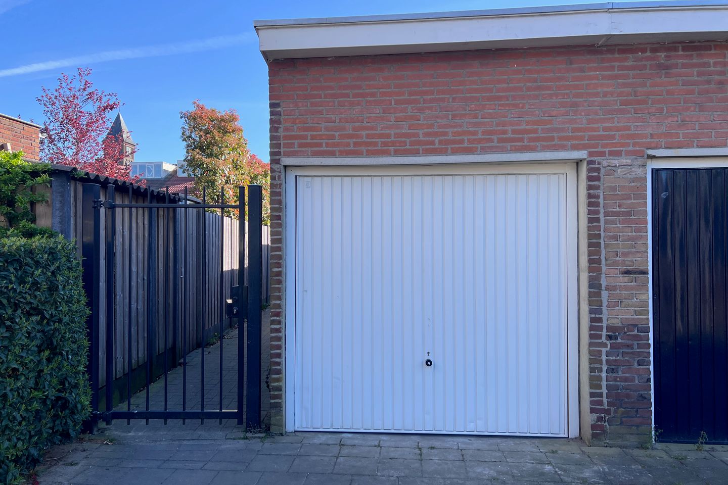 Voor de garage ligt een oprit (geen eigendom), maar wel alleen bruikbaar door eigenaar garage.
