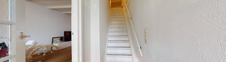 Entree, hal met toegang tot de trapopgang naar de verdieping en toegangsdeur naar de woonkamer.