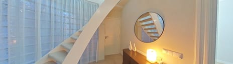 Via de voordeur stapt u een royale hal binnen, waar meteen de sfeer van het pand voelbaar is: hoge plafonds, paneeldeuren en een authentieke trapopgang. Deze hal geeft toegang tot het toilet en tot de in 2024 geplaatste keuken. Deze keuken bevindt zich aan de achterzijde en is ruim opgezet. Het beschikt over een vaatwasser, Quooker, XXL koel- en vrieskast, een Bora kookplaat, wijnklimaatkast en een dubbele combi-oven. Verder sluit de keuken dankzij de combinatie van de strakke lijnen met warme kleuren perfect aan bij het karakter van de woning.