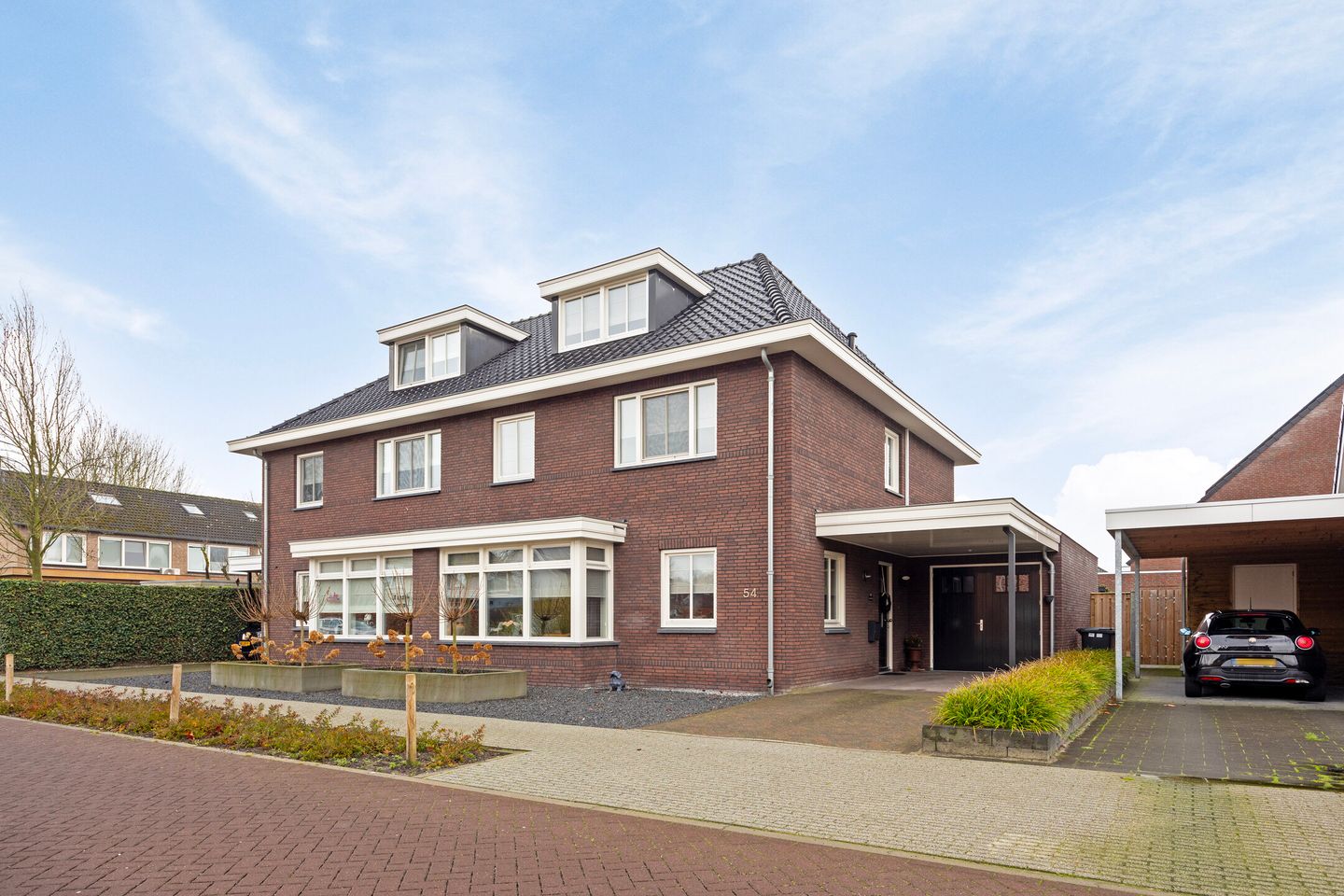 De inrit biedt plaats aan meerdere auto's en heeft een carport om altijd overdekt te parkeren. Zeer ruime hal met fraaie eiken trapopgang naar de eerste verdieping en toegang tot de woonkamer.