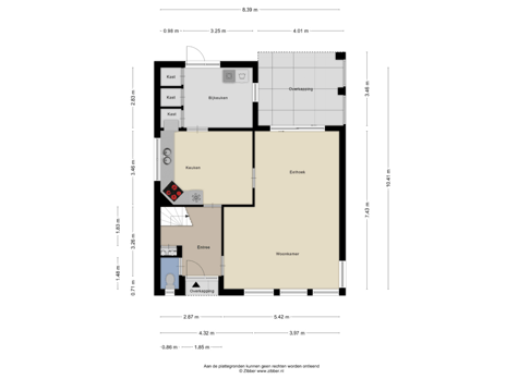 In de bijkeuken bevinden zich de aansluitingen voor de wasapparatuur en drie vaste kasten. Ook heb je vanuit hier toegang tot de achtertuin.