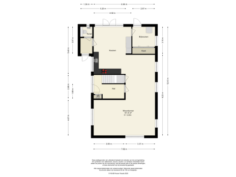 Bij binnenkomst word je verwelkomd in een ruime hal met trapopgang en toegang tot de woonkamer. De woonkamer van ca. 67 m² is licht en sfeervol, met veel raampartijen die zorgen voor een prettige lichtinval en een open, luchtige sfeer. Vloerverwarming zorgt voor extra comfort en het open karakter van de ruimte creëert een fijne verbinding met de eetkamer en keuken.