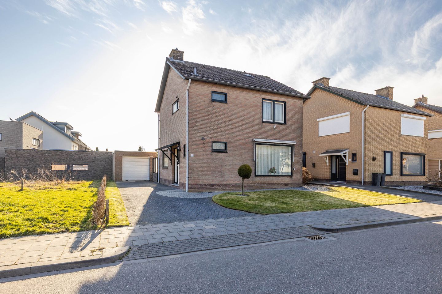 De woning kijkt vanuit de keuken op dit grasveldje uit en heeft de royale oprit aan deze kant gelegen. De andere zijgevel van de woning biedt tevens nog mogelijkheden om bv. een rechtstreekse tuintoegang aan die zijde te realiseren.