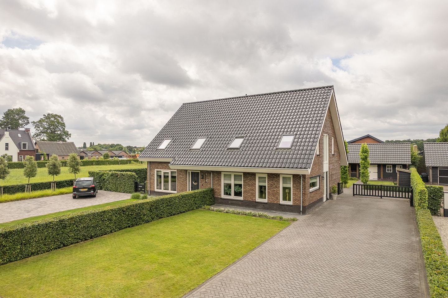Dankzij het royale perceel en de ligging van de woning, ligt er zowel voor- als achter de woning een royale tuin. Voor de woning ligt een strak gazon met daarnaast een royale oprit met ruimte voor meerdere auto’s, een camper, aanhangers, noem maar op. Bovendien is er een aansluiting voor een laadpaal aanwezig, dus ook jouw elektrische auto kun je op je eigen oprit opladen.