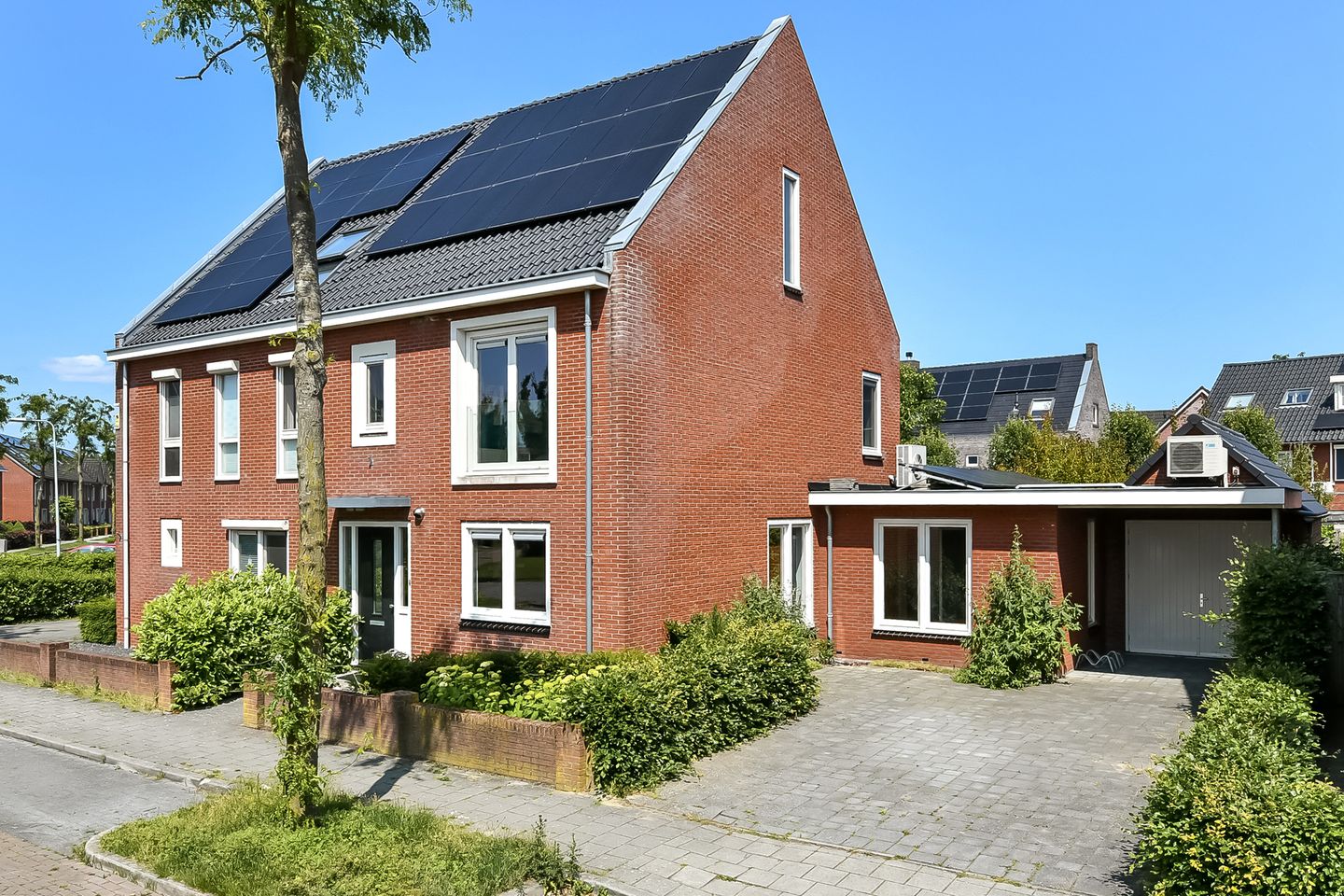 Aan de voorzijde ligt de woning vrij met uitzicht op een groenvoorziening en een speeltuin.