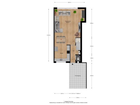 - 81 m² (10,80 meter diep en 7,47 meter breed)