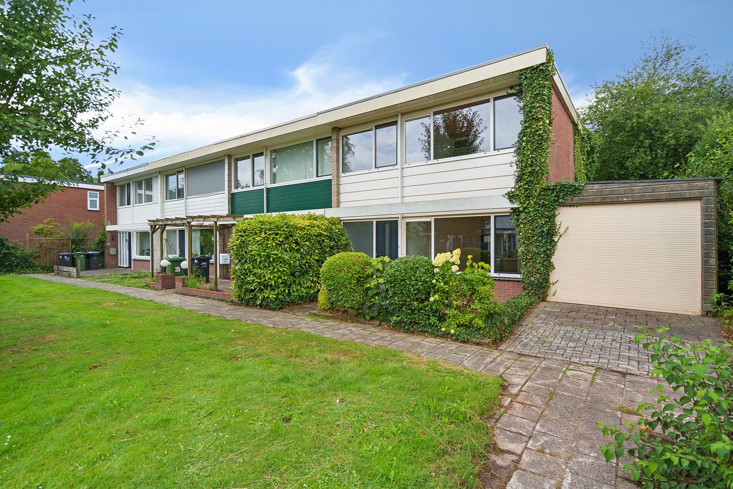 De tuin is onderhoudsvriendelijk aangelegd en biedt volop privacy. Achter de woning bevindt zich een extra berging in een blok met andere bergingen, ideaal voor fietsen of tuingereedschap.