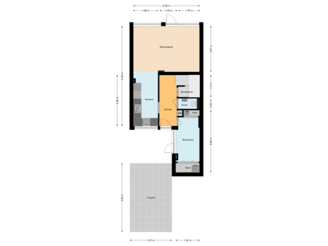 52 m² (9,50 meter diep en 5,50 meter breed)