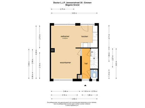- 66 m² (12,00 meter diep en 5,50 meter breed)