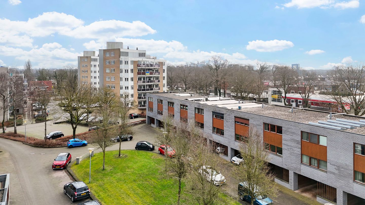 De achtertuin is compact en onderhoudsvriendelijk, maar biedt volop zon dankzij de ligging op het zuiden. Ideaal om toch lekker te kunnen genieten van de buitenlucht. Aan de voorzijde van de woning is nog een berging/schuur gesitueerd en hier kan men overdekt parkeren op eigen terrein.