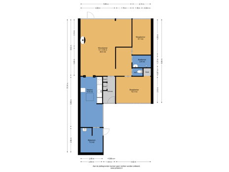 - 60 m² (10,00 meter diep en 6,00 meter breed)