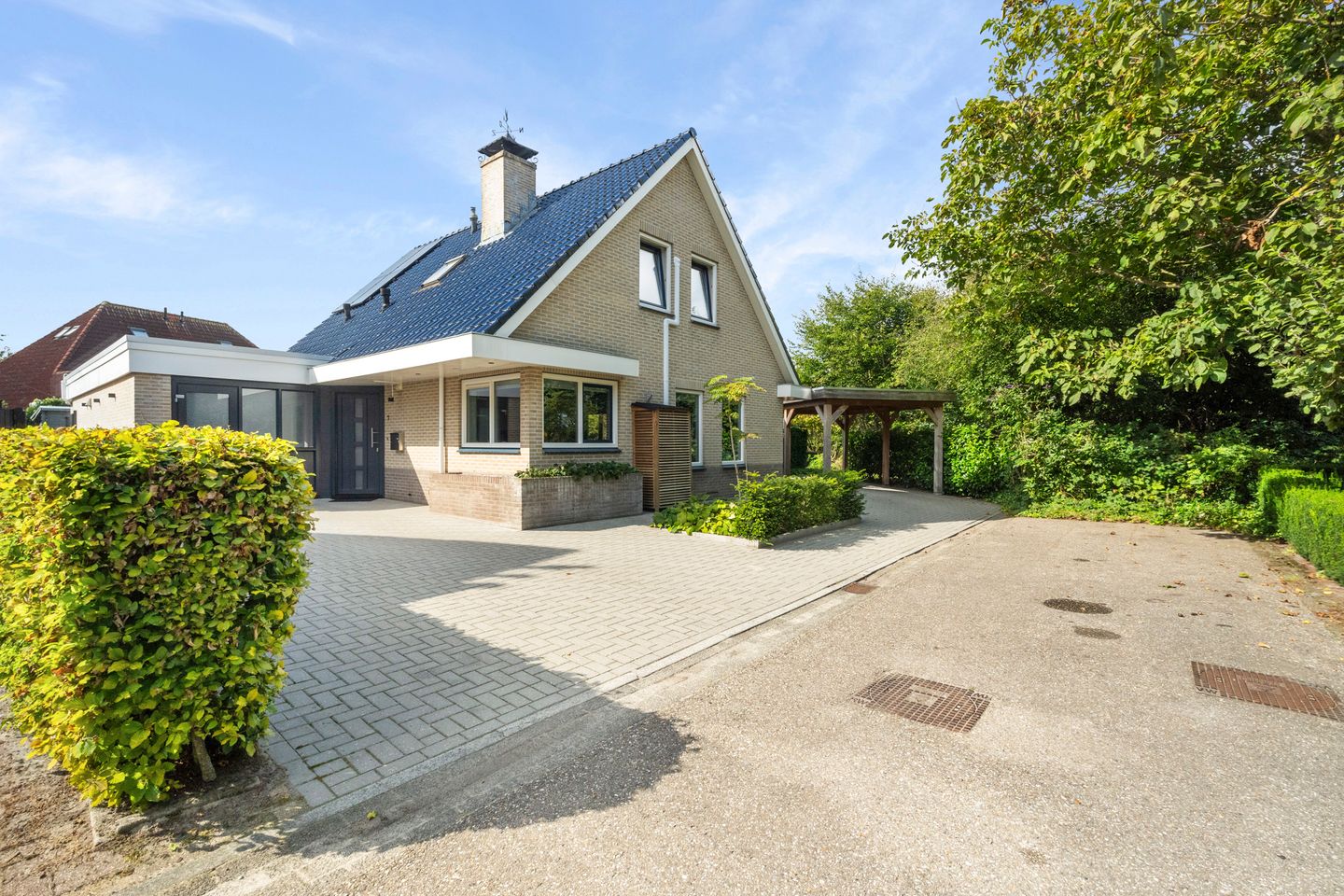 - vrijstaande houten carport aan de voorzijde van de woning, een goede plek voor de auto of bijvoorbeeld een camper of caravan.