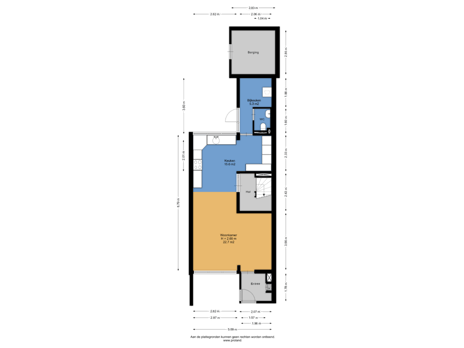 - 56 m² (11,00 meter diep en 5,10 meter breed)