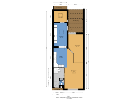 - 91 m² (13,00 meter diep en 7,00 meter breed)