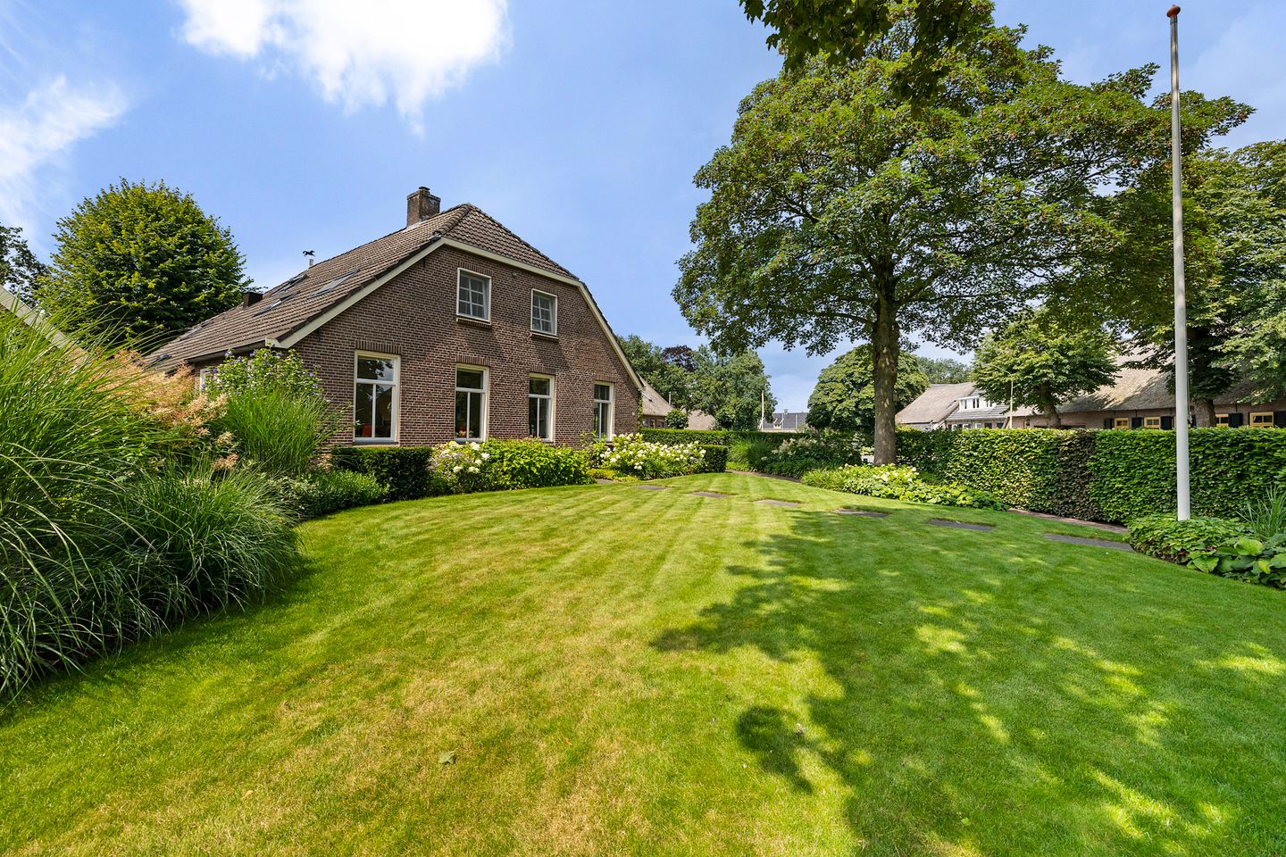 De boerderij staat op een kavel van 2.990 m². Op de kavel is in 1995 een bij de boerderij passende schuur-garage gerealiseerd die o.a. aan bijv. drie auto's plaats kan bieden, maar ook alle tuingereedschap kan hier gestald worden. Aan de kopse kant is een heerlijke overkapping, waaronder je bijvoorbeeld heerlijk kan bijkomen, nadat je een aantal baantjes hebt gezwommen in het zwembad dat zich tussen de boerderij en de schuur bevindt.