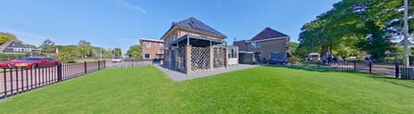 De tuin ligt aan de zijkant van de woning en is op het zuiden gesitueerd. Je hebt aan de ene kant een heerlijke terrasoverkapping en aan de andere kant een afsluitbare tuinkamer.
