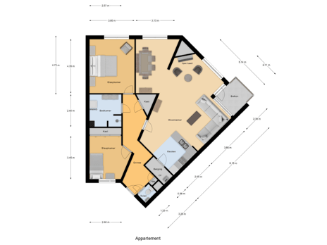 Via de galerij aan de achterzijde bereikt u het appartement. Binnenkomst in de hal met toegang tot alle vertrekken. Zeer praktische garderobekast met veel bergruimte. De ruime woonkamer met open keuken vormt het hart van het appartement. Dankzij de grote ramen is er veel natuurlijke lichtinval en is er een prettige verbinding met het balkon. De keuken is netjes maar origineel uit het bouwjaar en kan naar eigen smaak worden gemoderniseerd, ideaal om hier uw droomkeuken te realiseren. Bijkeuken met CV ketel en mechanische ventilatie. Het appartement beschikt over twee slaapkamers, waarvan één zeer ruim van formaat. Beide slaapkamers zijn voorzien van een vaste kastenwand. De badkamer is eveneens uit 1996 en voorzien van een douche, dubbele wastafel en aansluitingen voor de wasmachine. Daarnaast is er een apart toilet aanwezig.