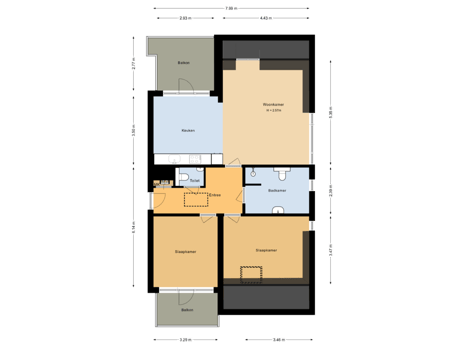 - 8 m² (2,77 meter diep en 2,93 meter breed)