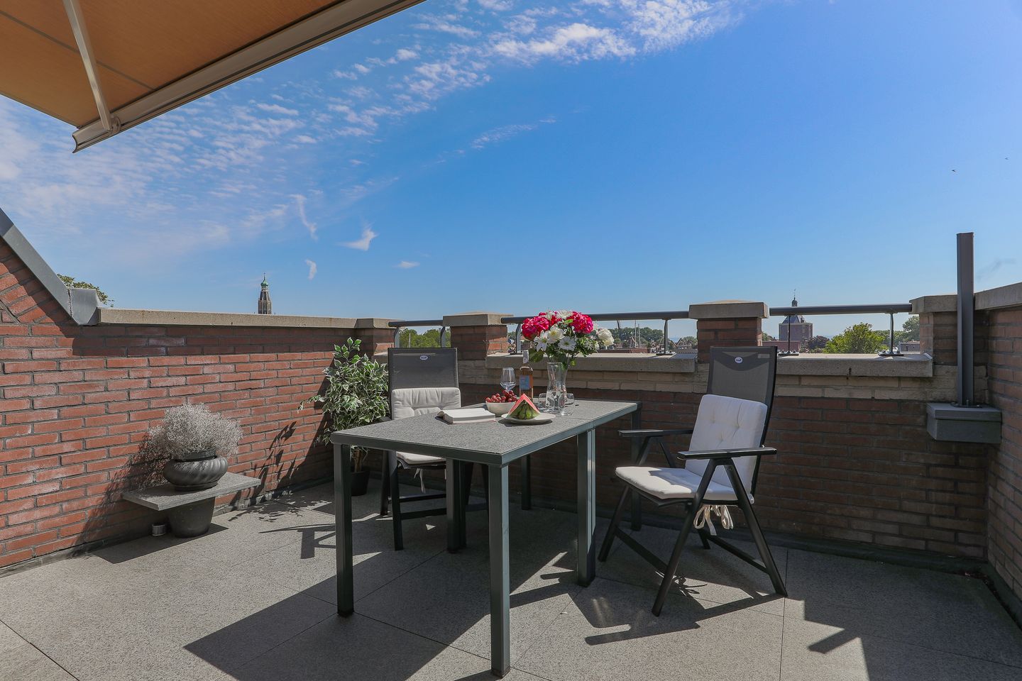 Het terras biedt een ideale combinatie van zon en schaduw en het penthouse biedt aangenaam veel privacy. Met meerdere openslaande deuren en raampartijen is het uitzicht op slimme wijze betrokken in de buitengewoon comfortabele woonbeleving. Jaarrond vormen het IJsselmeer, de masten van passerende schepen en de contouren van de stad – met de Dijk en de Drommedaris als eyecatchers – een fraai schouwspel, als een levend schilderij dat nooit verveelt. In één woord: fenomenaal.