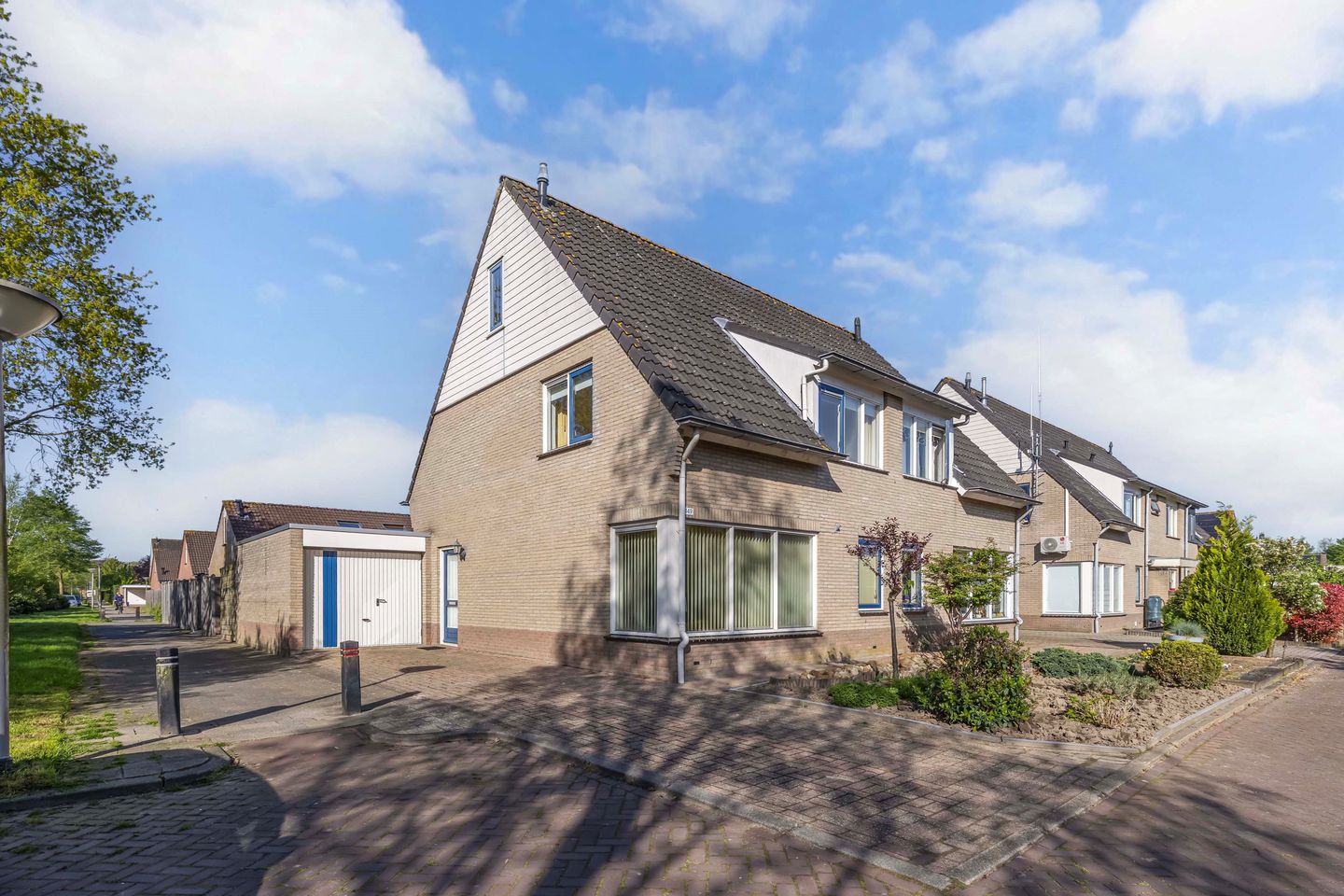 Naast de woning staat nog een garage met daarachter een overkapping.