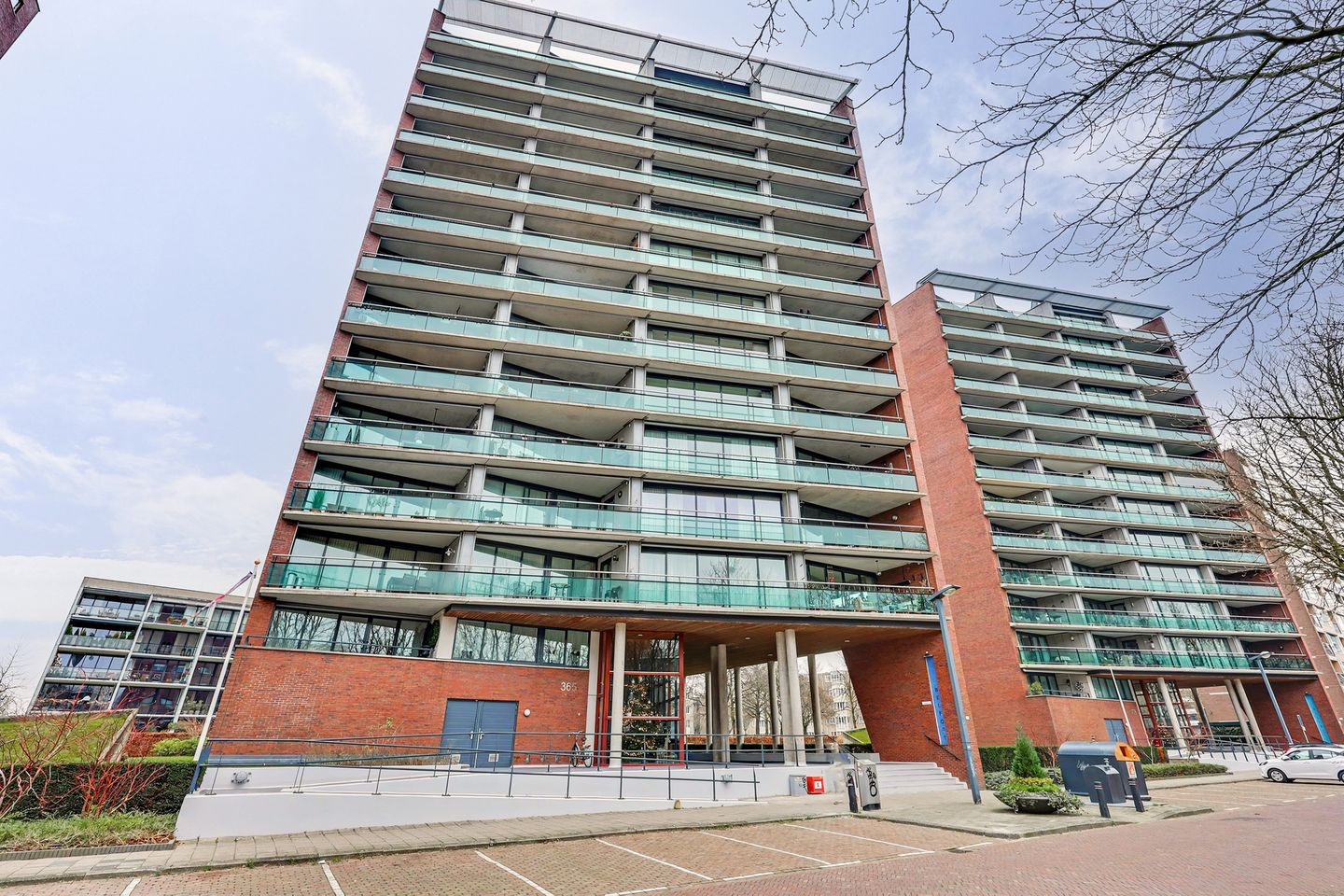 De centrale entree van het complex maakt een verzorgde en veilige indruk, met intercominstallatie, een lift en toegang tot de gezamenlijke ruimten. Vanuit hier is het appartement eenvoudig bereikbaar.