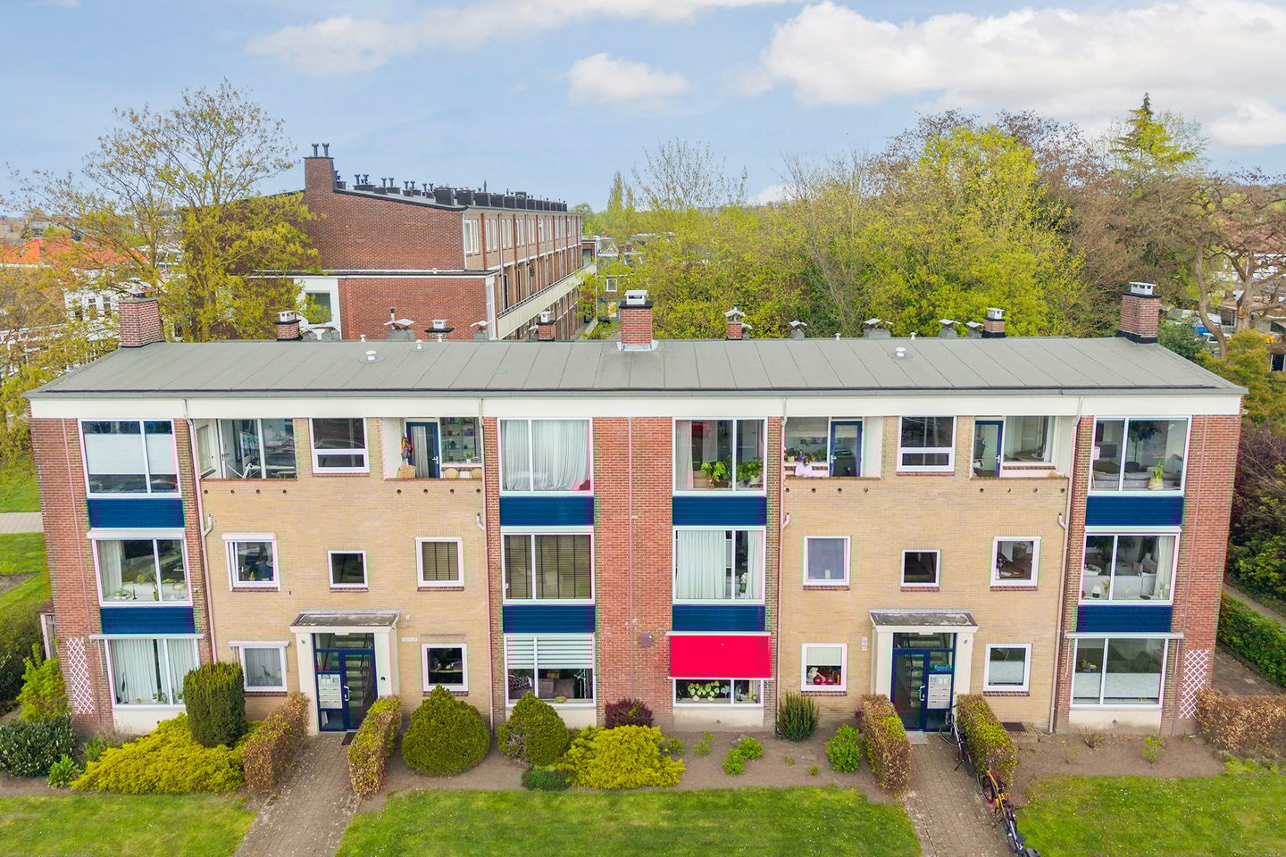 2e verdieping: entree, hal met toilet en meterkast. Ruim woonkamer aan de zonnige voorzijde met balkon, badkamer voorzien van douche en wastafel, dichte keuken van inbouwapparatuur en balkon en 2 slaapkamers.