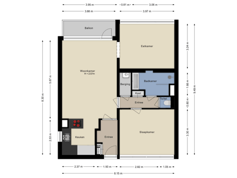 - 3 kamers (2 slaapkamers)