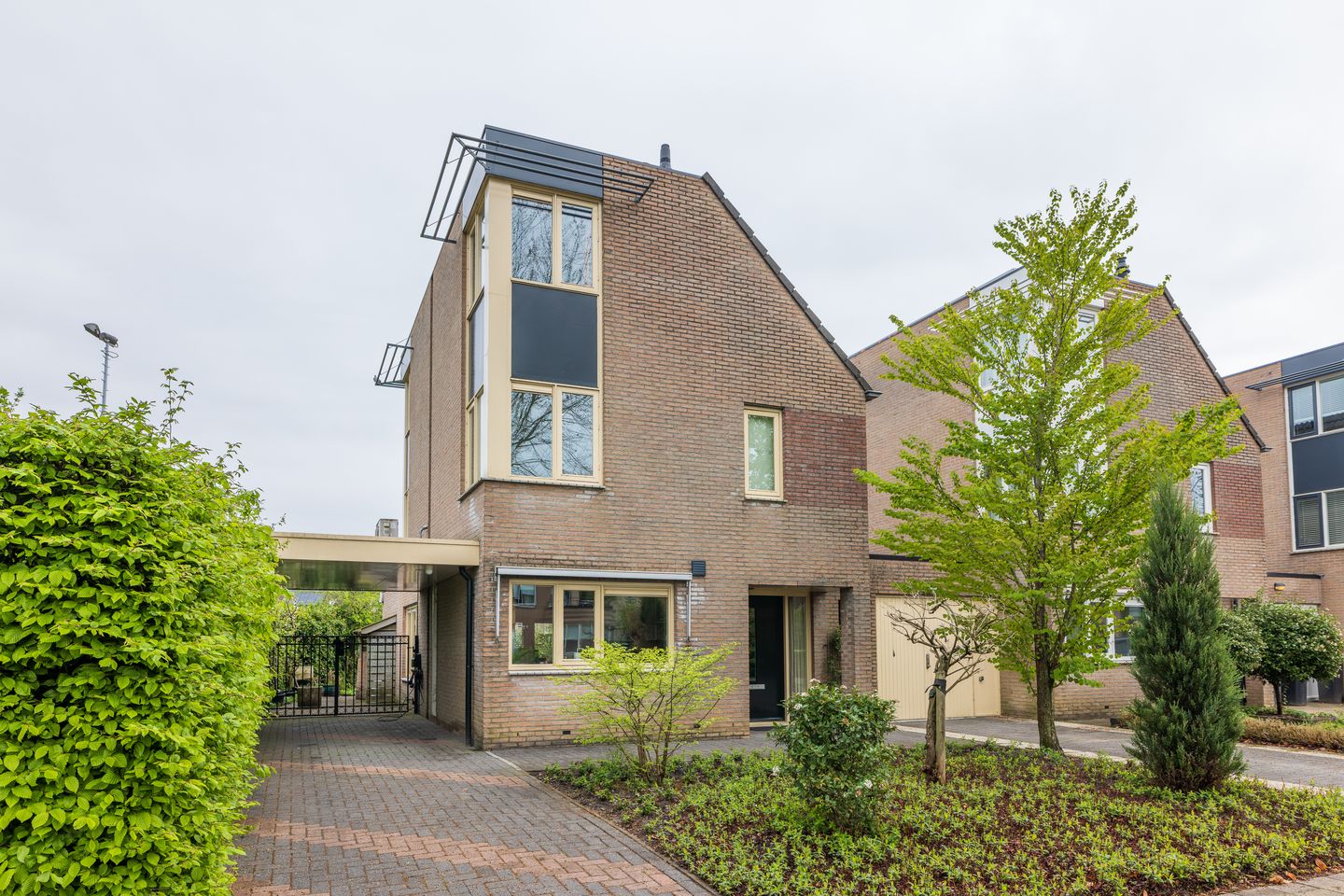 De voortuin is fraai aangelegd en biedt volop privacy. Er is een dubbele oprit, waarvan één leidt naar de berging en de andere langs de woning loopt naar de carport.