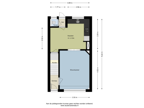 - 38 m² (8,20 meter diep en 5,73 meter breed)